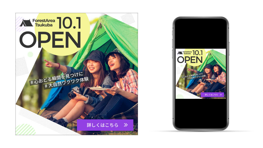 バナーを通じてキャンプへの興味を持ってもらい、キャンプ場を紹介したランディングページに遷移してもらう。
